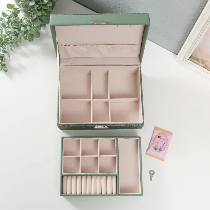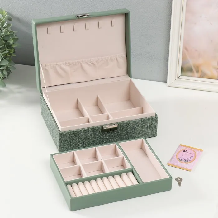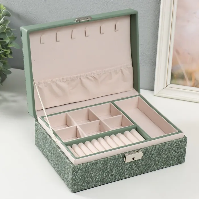Шкатулка для украшений «Зелёная», искусственная кожа, с замком, 23×17.2×9 см — Характеристики