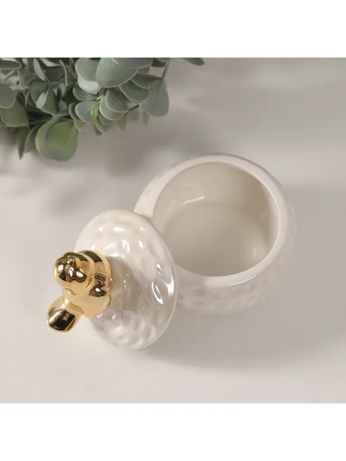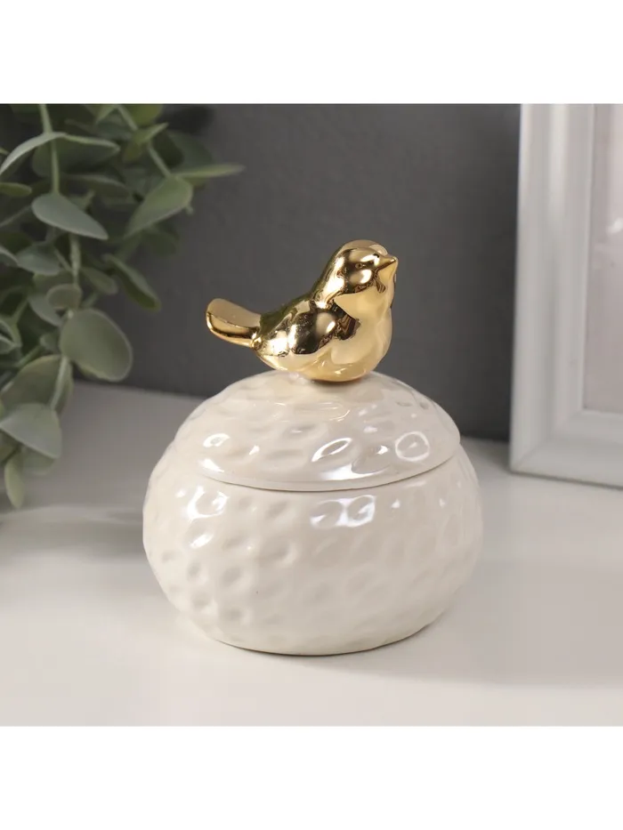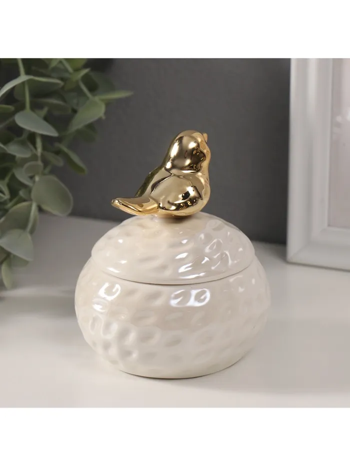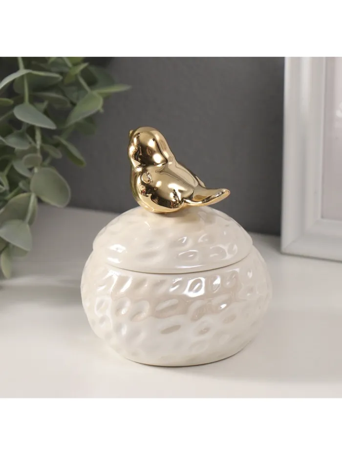 Шкатулка для украшений «Золотая птичка на гнезде», керамика, белый перламутр, 8.5×8.5×10 см — Характеристики