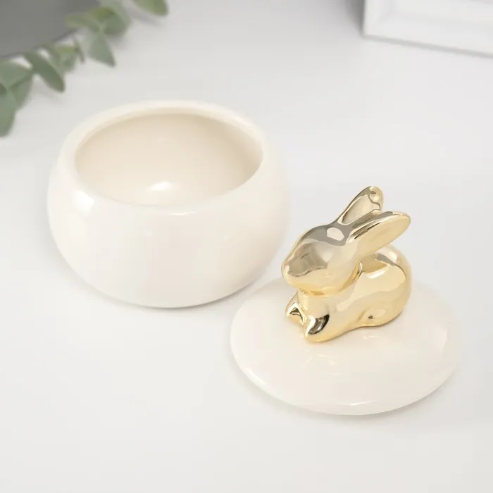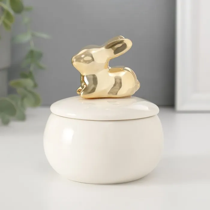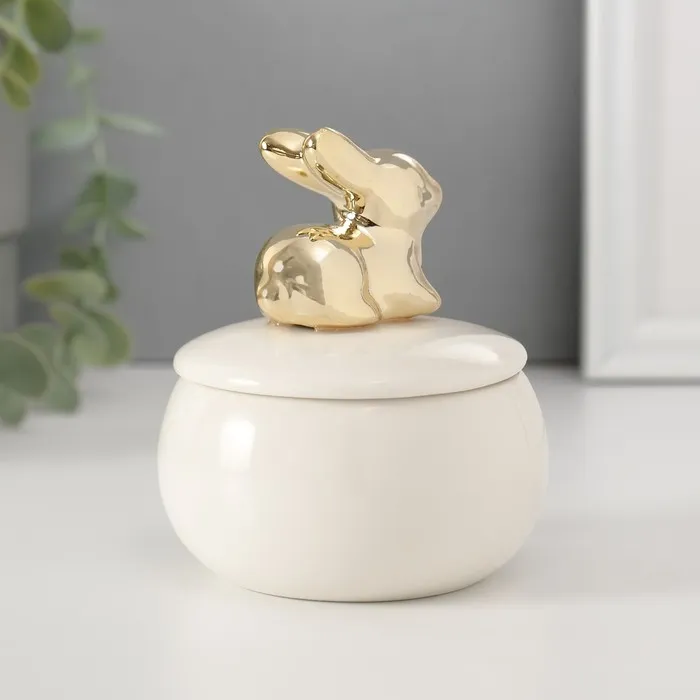 Шкатулка для украшений «Золотой кролик», керамика, белая, 8×8×10 см — Характеристики