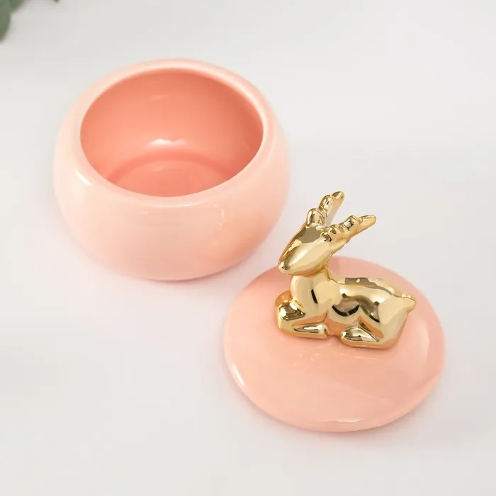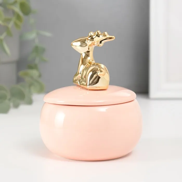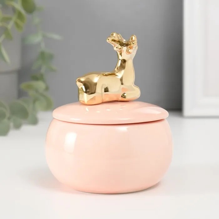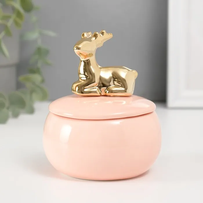 Шкатулка для украшений «Золотой олень», керамика, розовая, 8×8×10 см — Характеристики