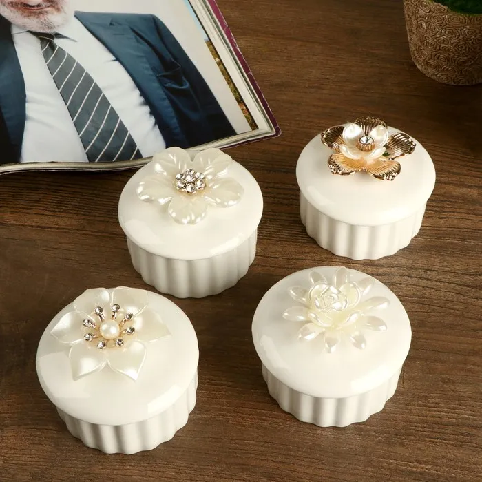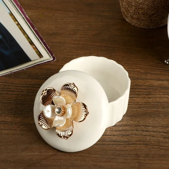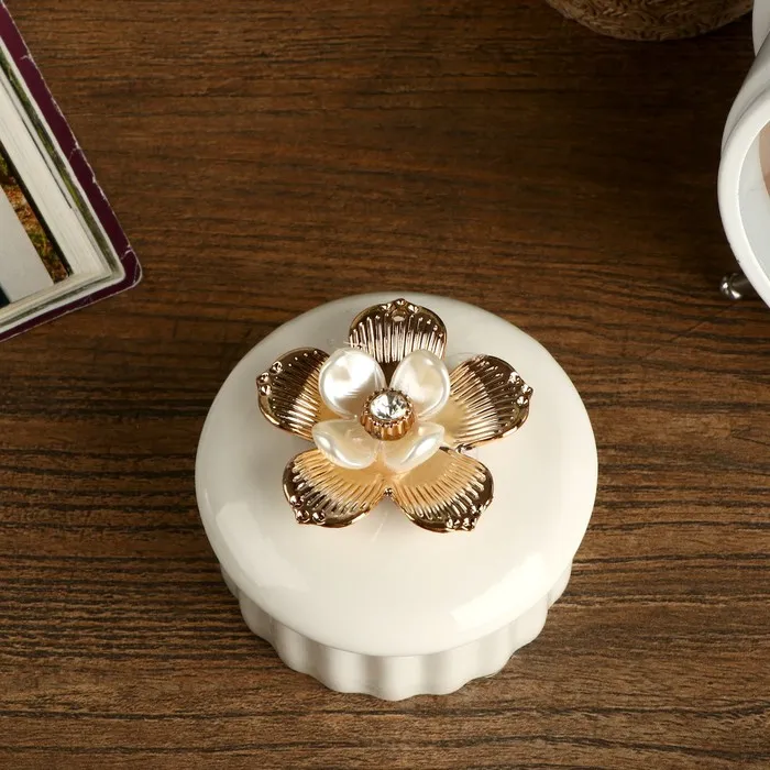 Шкатулка для украшений «Золотой цветок», керамика, 6×7.3×7.3 см, МИКС — Характеристики