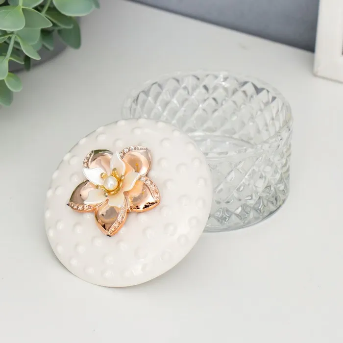 Шкатулка для украшений «Золотой цветок», стекло, керамика, 6.5×8.5×8.5 см — Характеристики