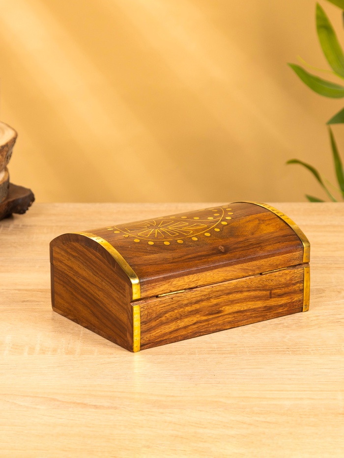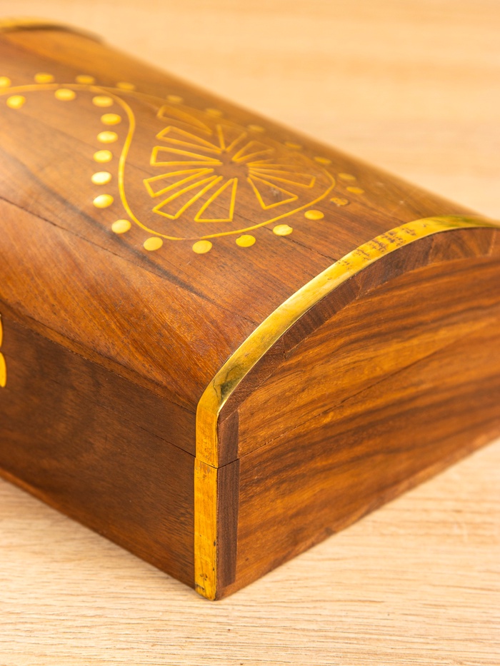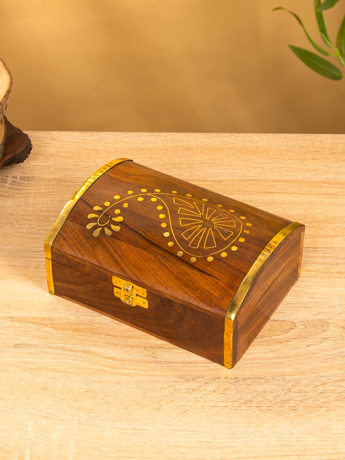 Шкатулка «Глу», 18×12.8×8 см, дерево шишам, латунь — Характеристики
