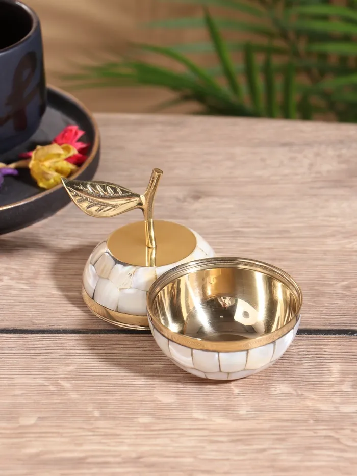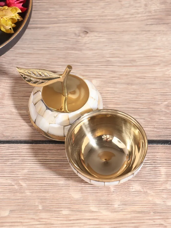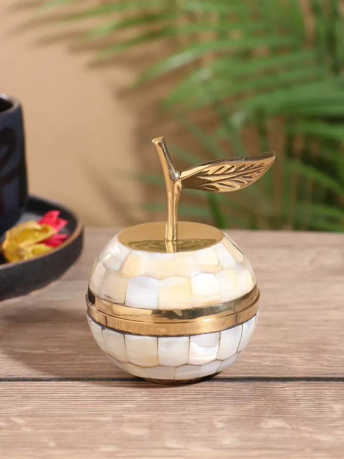 Шкатулка «Яблоко», 7×7×10.5 см, латунь с перламутром, белая — Характеристики