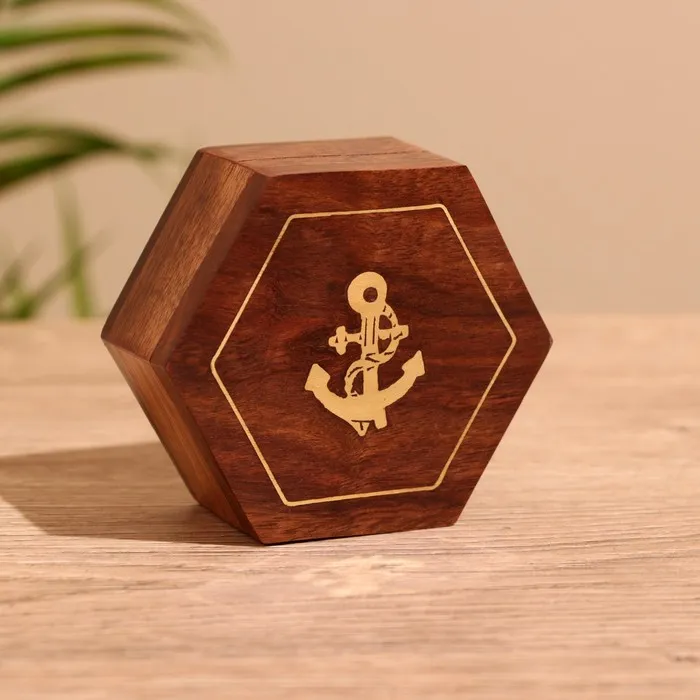 Шкатулка "Якорь" 8,5х7,5х3,5 см, дерево шишам — Характеристики