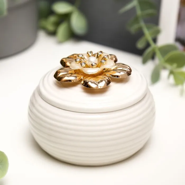 Шкатулка керамика "Двойной цветок с жемчужиной" 6,5х8,5х8,5 см — Характеристики