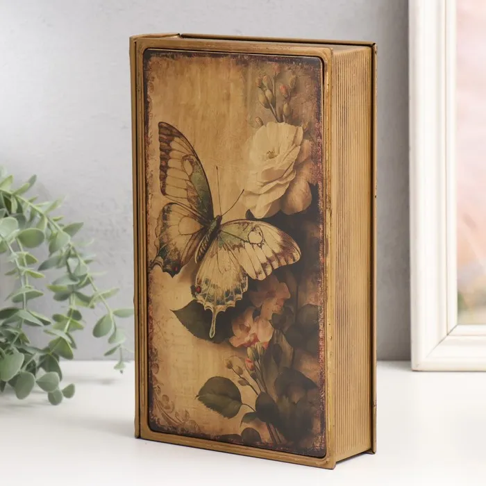 Шкатулка-книга «Бабочка на букете», металл и искусственная кожа, 26×16×5 см — Характеристики