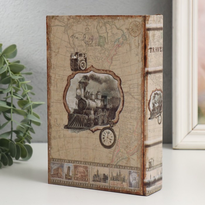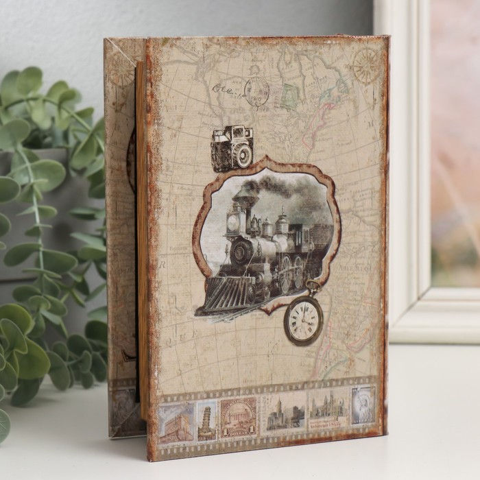 Шкатулка-книга дерево кожзам "Ретро поезд" 4х12х18 см — Характеристики