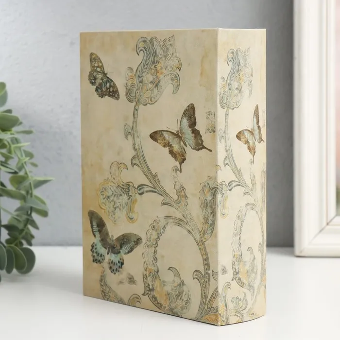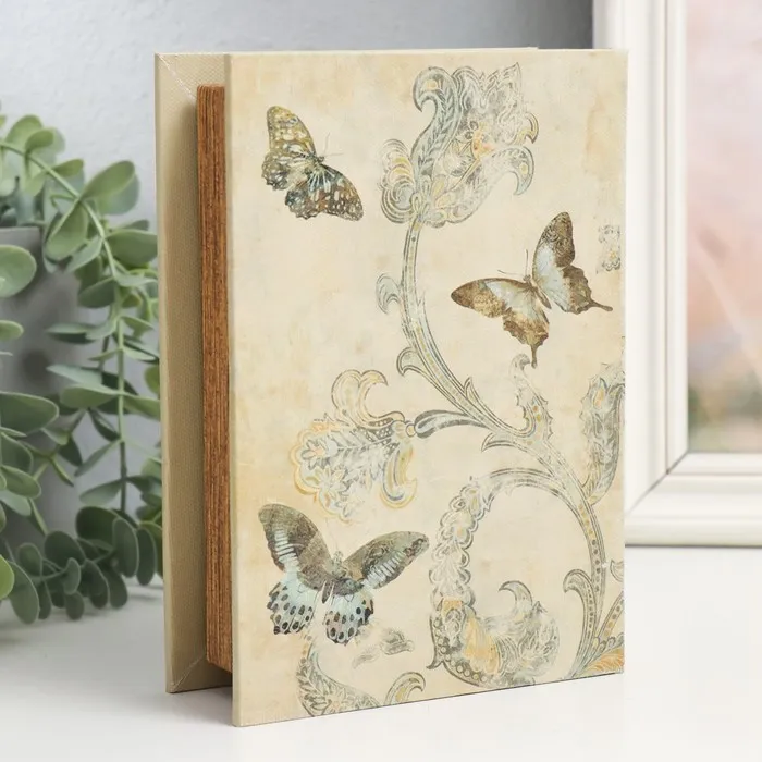 Шкатулка-книга дерево, кожзам "Сказочные цветы и бабочки. Винтаж" 4,5х13х18 см — Характеристики