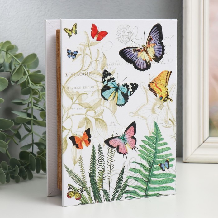 Шкатулка-книга «Яркие бабочки и папоротник», дерево, искусственная кожа, 4.5×13×18 см — Характеристики