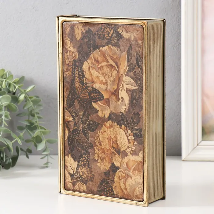 Шкатулка-книга «Королевские розы и бабочки. Винтаж», металл и искусственная кожа, 26×16×5 см — Характеристики