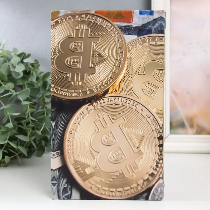 Шкатулка книга-сейф «Биткоин и доллар», дерево, искусственная кожа, 21×13×5 см — Характеристики