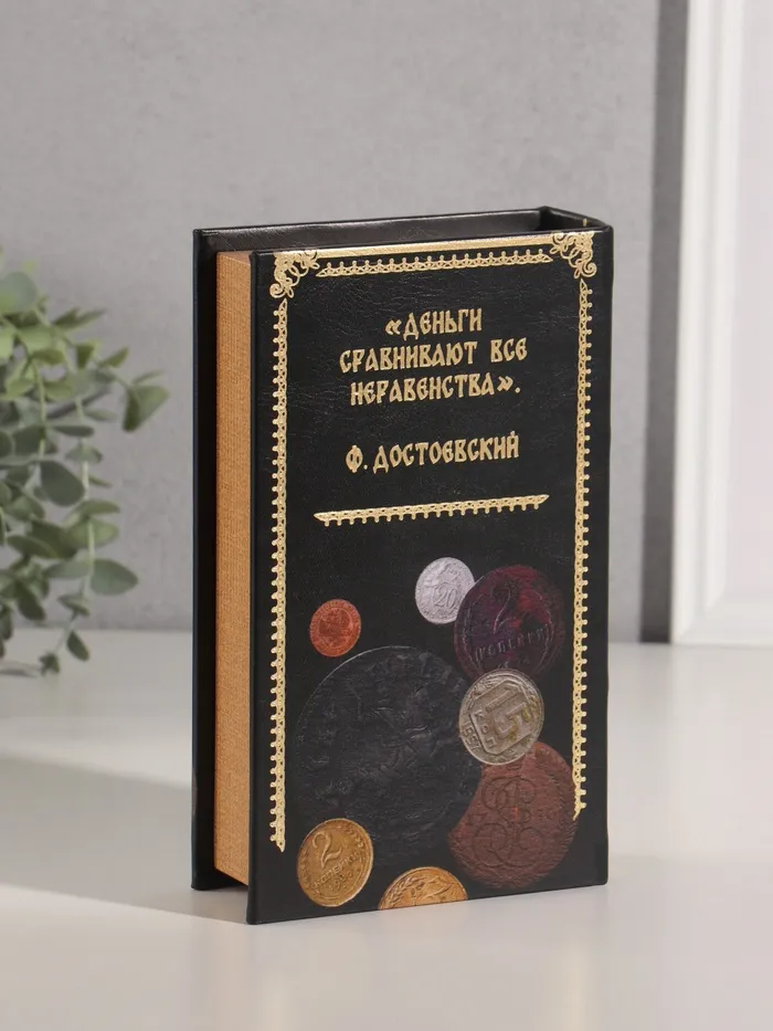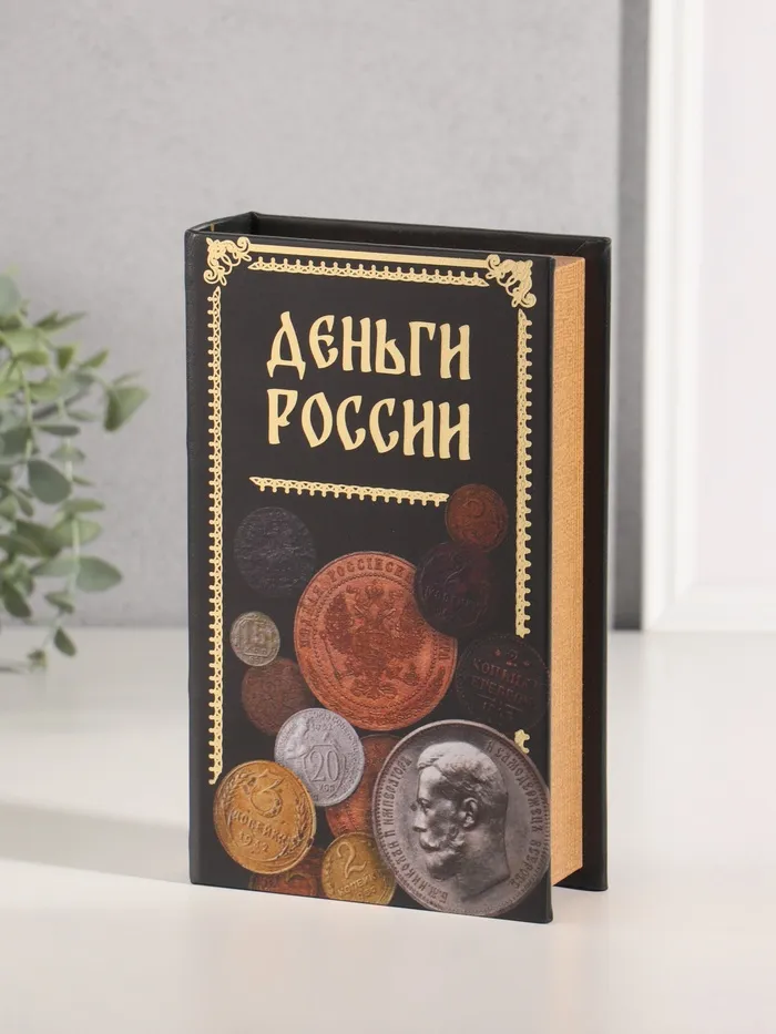 Шкатулка книга-сейф «Деньги России», дерево, искусственная кожа, тиснение, 21×13×5 см — Характеристики