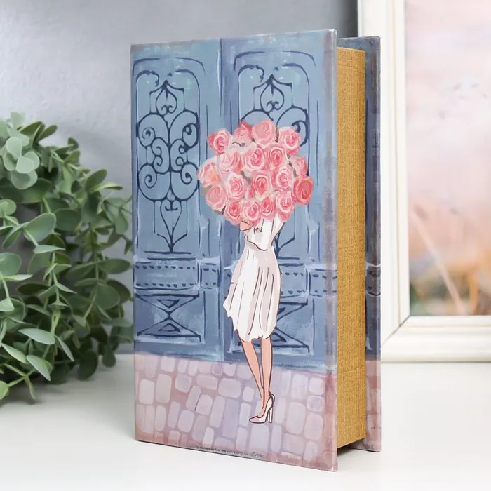 Шкатулка книга-сейф «Девушка с букетом», дерево, искусственная кожа, 21×13×5 см — Характеристики
