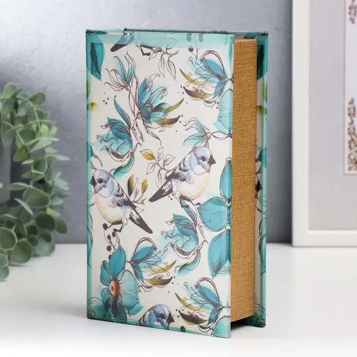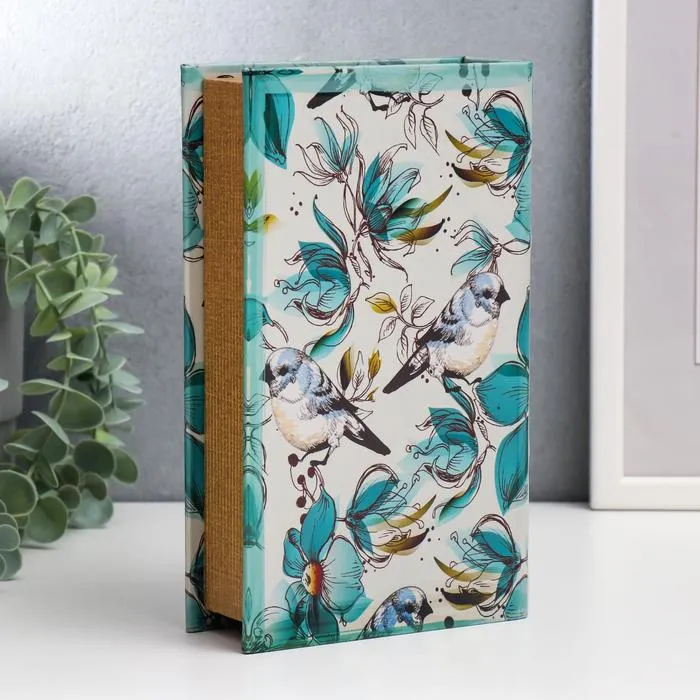 Шкатулка книга-сейф «Голубые птички и зелёные цветы», дерево, искусственная кожа, 21×13×5 см — Характеристики