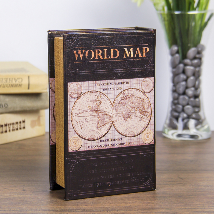 Шкатулка книга-сейф «Карта мира», дерево, искусственная кожа, 17×11×5 см — Характеристики
