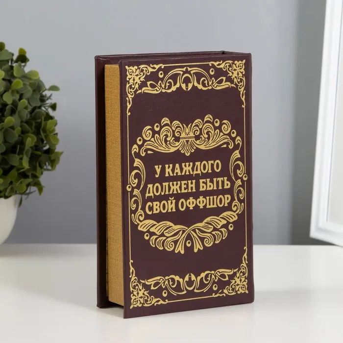 Оригинальное хранилище для самых разных предметов, которое не так-то просто обнаружить! На вид такой предмет очень похож на обычную книгу и, находясь на книжной полке, не выделяется своим внешним видом из ряда настоящих томов и томиков. Однако на самом деле – это настоящий небольшой сейф, запирающийся на ключ и укрывающий от посторонних глаз то, что вам захочется туда спрятать. Эффектный и практичный аксессуар, который будет замечательным подарком – ведь у каждого найдутся тайные мелочи, которые не хочется никому показывать.