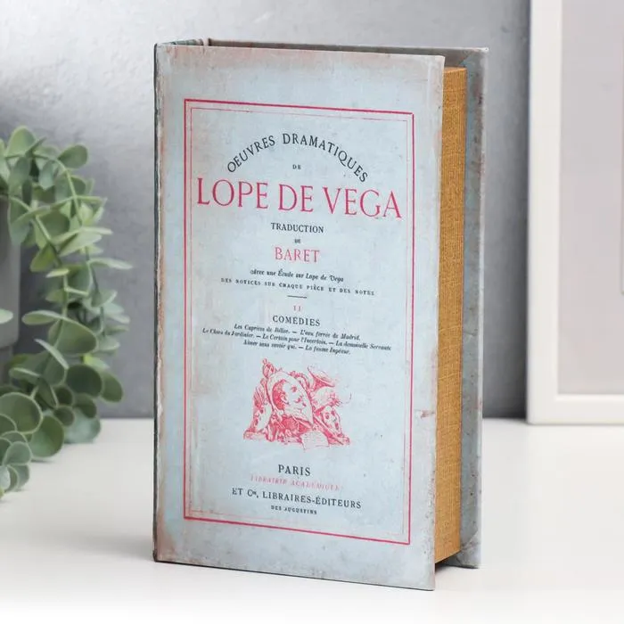 Шкатулка книга-сейф «Лопе де Вега. Драматические произведения», дерево, искусственная кожа, серая, 21×13×5 см — Характеристики