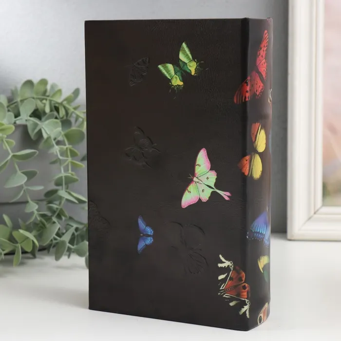 Шкатулка книга-сейф «Мир бабочек», дерево и искусственная кожа, с замком, 21×13×5 см — Характеристики