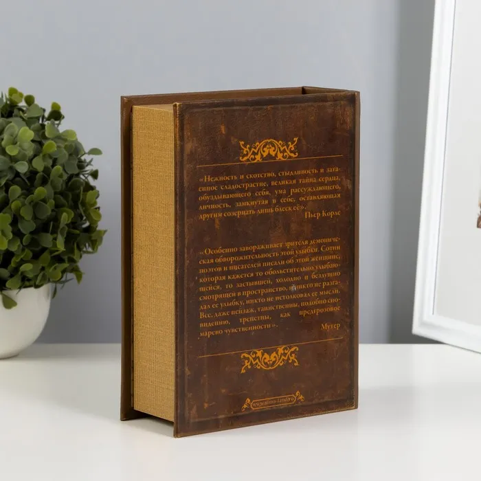 Хочешь спрятать что-нибудь – положи это на видное место», – гласит народная мудрость. Именно поэтому этот небольшой сейф замаскирован под… книгу! В нем вы можете хранить то, что кажется достаточно личным и что Вы не привыкли показывать посторонним. Это могут быть старые письма, которые Вы время от времени перечитываете, фотографии, вызывающие драгоценные воспоминания, или другие важные для Вас предметы. Положите их в сейф, заприте, поставьте на книжную полку или стеллаж и убедитесь в оригинальности этого тайничка: он будет находиться на видном месте и при этом не привлечет к себе внимания.