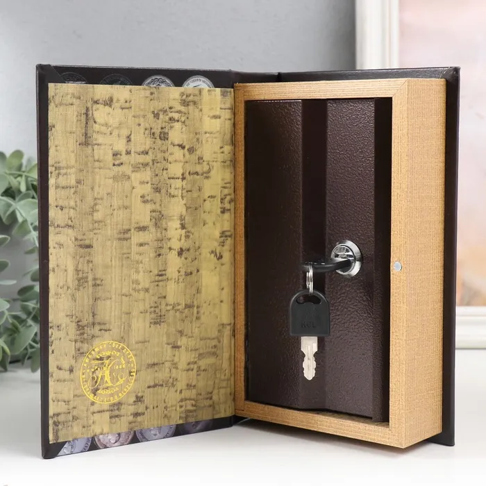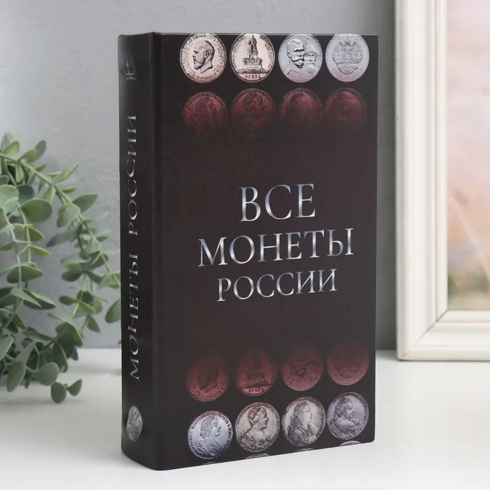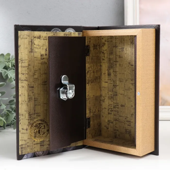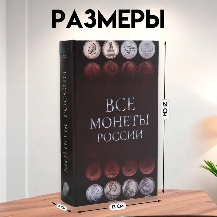 Шкатулка книга-сейф «Монеты России», дерево и искусственная кожа, с замком, 21×13×5 см — Характеристики