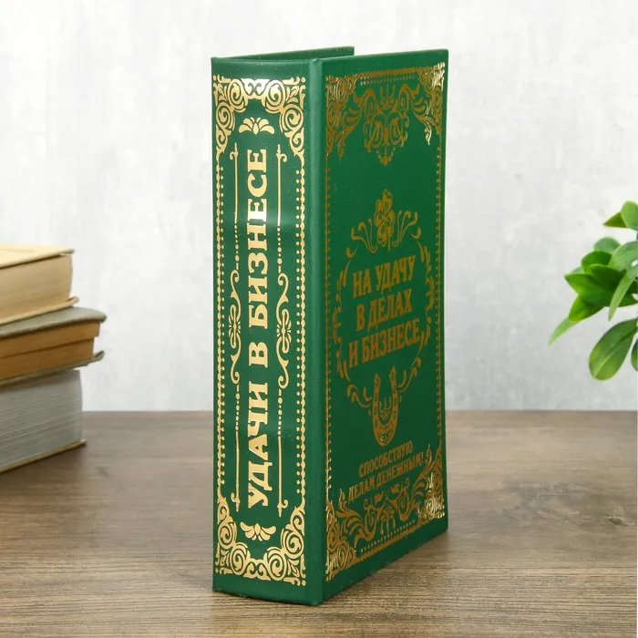 Шкатулка книга-сейф «На удачу в делах и бизнесе», дерево и искусственная кожа, с замком, тиснение, 21×13×5см — Характеристики