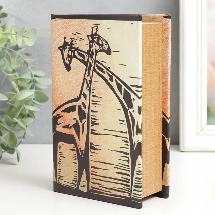 Шкатулка книга-сейф «Наскальные рисунки. Жирафы», дерево, искусственная кожа, 17×11×5 см — Характеристики