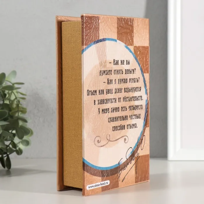 Традиция прятать деньги в книгах уходит своими корнями глубоко в прошлое, но до сих пор пользуется большой популярностью. Учитывая это, мы решили пойти далеко вперед и разработали Книгу-сейф «Россия Державная». Внешне она очень похожа на своих собратьев, но в тоже время отличается большей надежностью. Надежный замок позволит уберечь сокровища и тайные мелочи от незваных кладоискателей.
