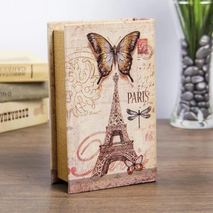 Шкатулка книга-сейф «Париж. Эйфелева башня. Бабочки», дерево, искусственная кожа, 17×11×5 см — Характеристики