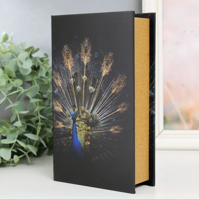 Шкатулка книга-сейф «Павлин», дерево, искусственная кожа, 21×13×5 см — Характеристики