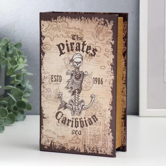 Шкатулка книга-сейф «Пираты. Карибское море», дерево, искусственная кожа, 21×13×5 см — Характеристики