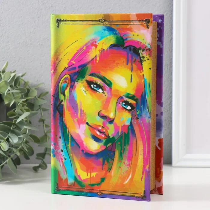 Шкатулка книга-сейф «Портрет девушки. Пятна краски», дерево, искусственная кожа, тиснение, 21×13×5 см — Характеристики