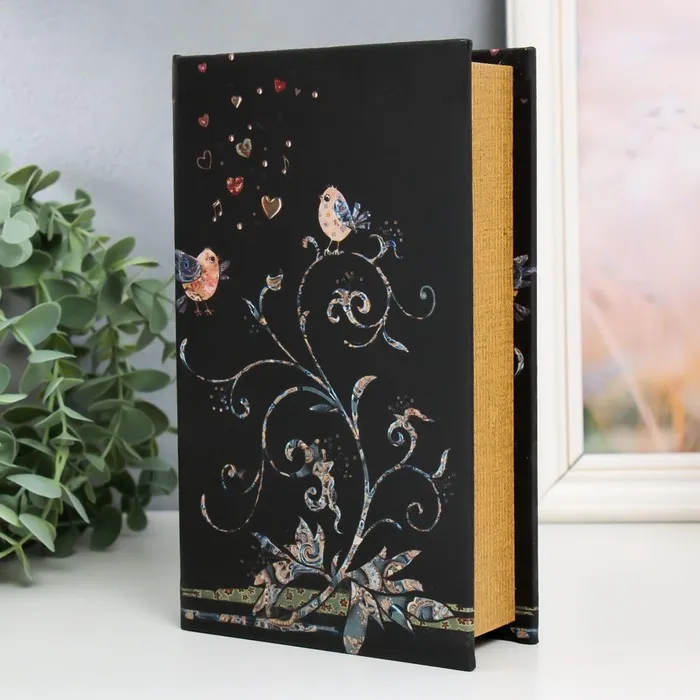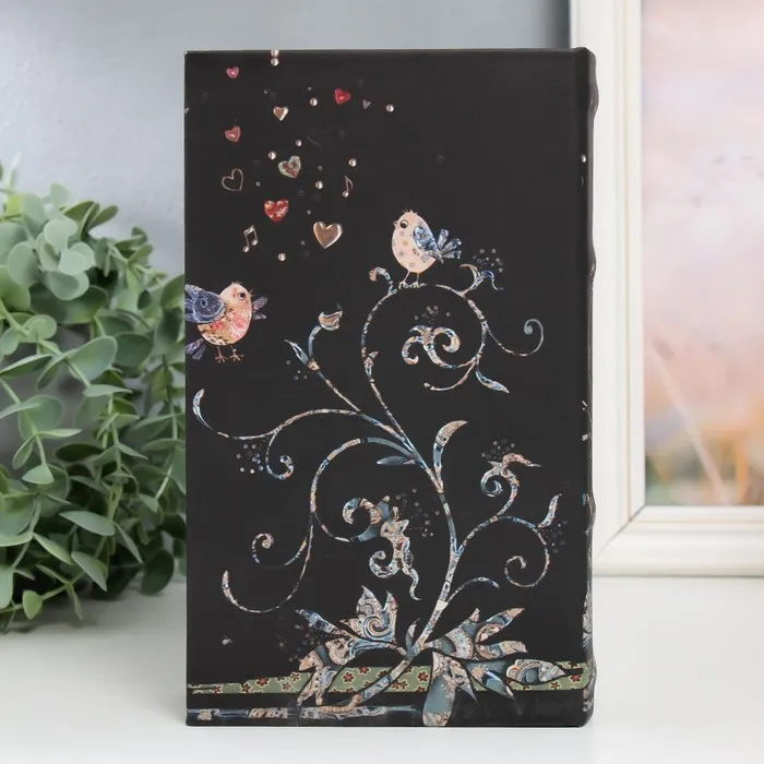 Шкатулка книга-сейф «Птицы и завитки», дерево, искусственная кожа, 21×13×5 см — Характеристики