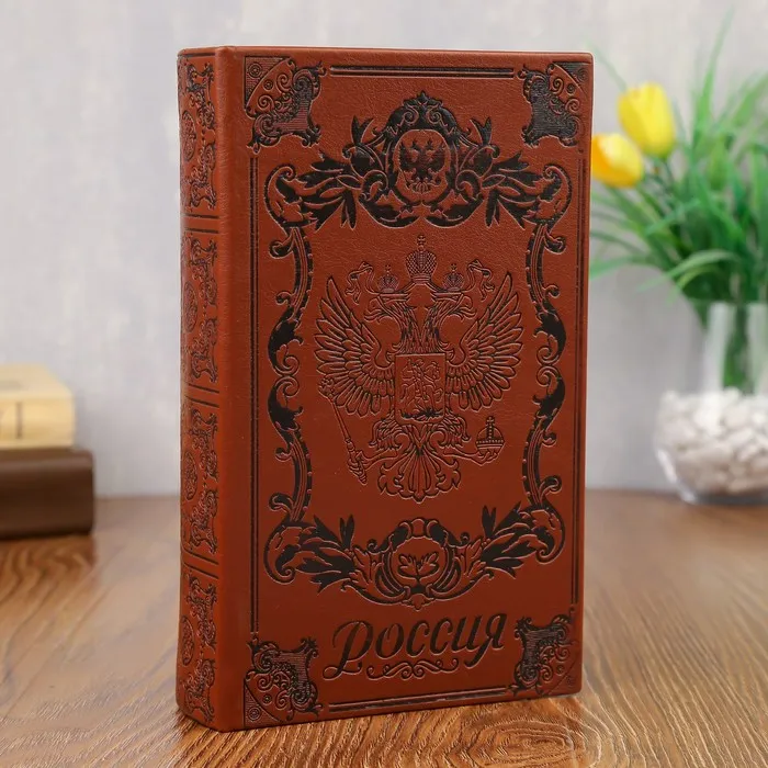 Сейф-книга "Россия" - оригинальное хранилище для самых разных предметов, которое не так-то просто обнаружить! На вид такой предмет очень похож на обычную книгу и, находясь на книжной полке, не выделяется своим внешним видом из ряда настоящих томов и томиков. Однако на самом деле – это настоящий небольшой сейф, запирающийся на ключ и укрывающий от посторонних глаз то, что вам захочется туда спрятать.