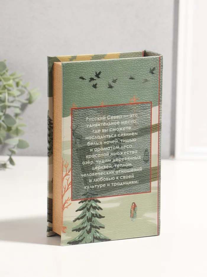 Шкатулка книга-сейф «Север России», дерево, искусственная кожа, 3D тиснение, 21×13×5 см — Характеристики