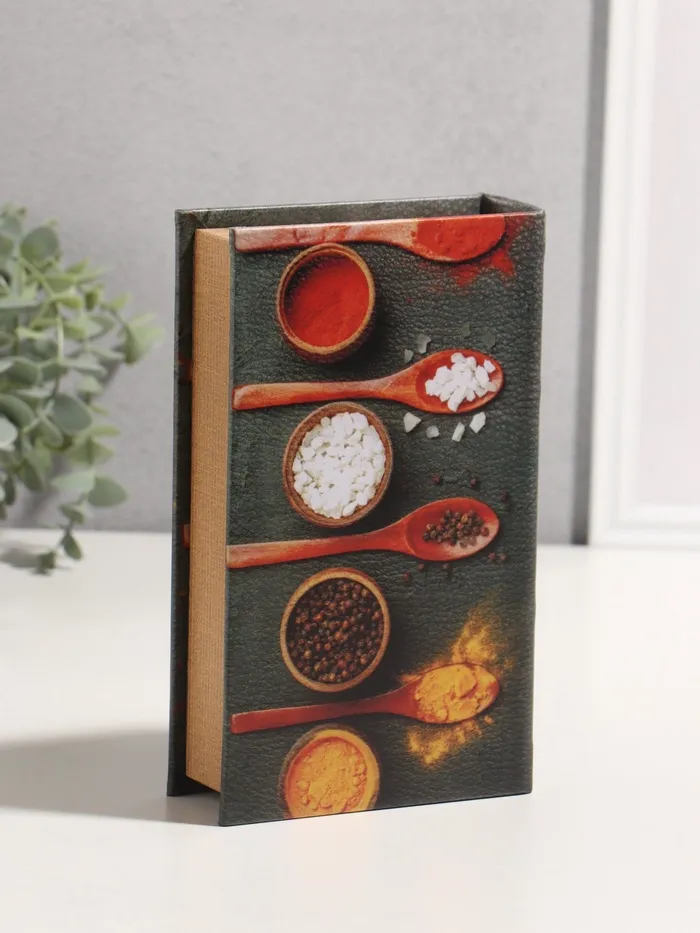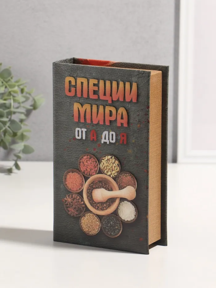 Шкатулка книга-сейф «Специи мира от А до Я», дерево, искусственная кожа, 3D тиснение, 21×13×5 см — Характеристики