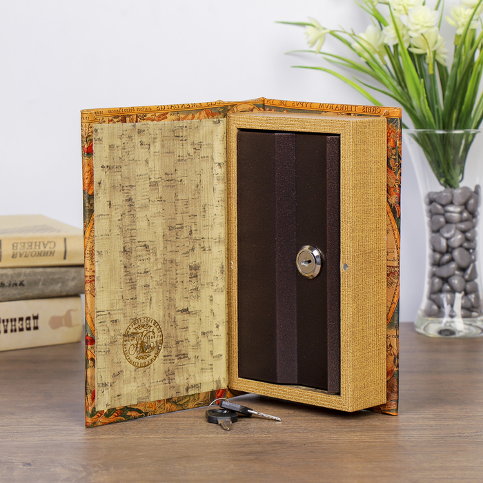 Шкатулка книга - сейф «Старинные карты мира», дерево и искусственная кожа, с замком, 21×13×5 см — Характеристики