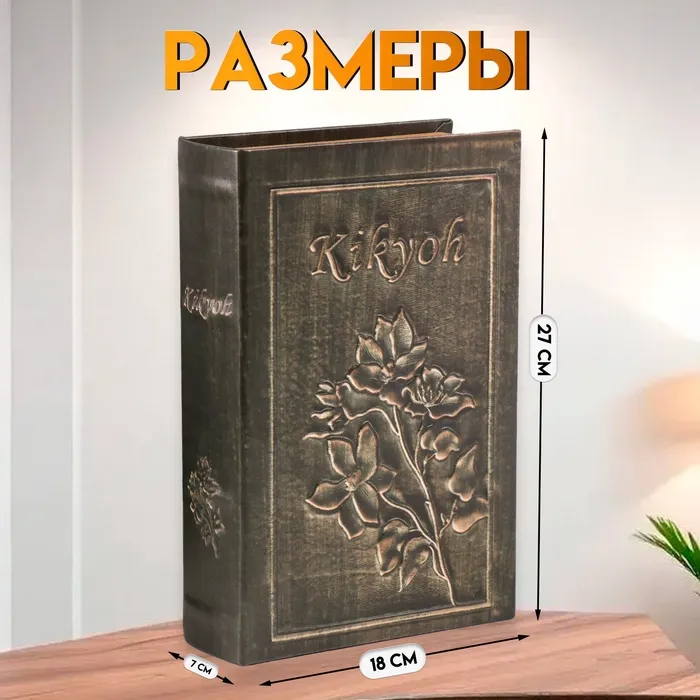 Шкатулка книга-сейф «Цветение», дерево и искусственная кожа, с замком, 27×18×7 см — Характеристики