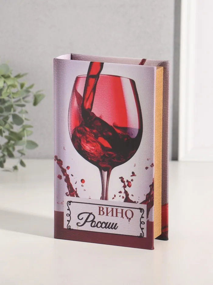Шкатулка книга-сейф «Вино России», дерево, искусственная кожа, тиснение, 21×13×5 см — Характеристики
