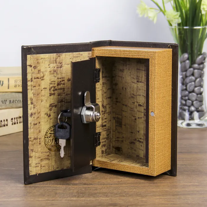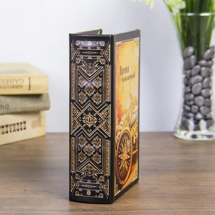 Шкатулка книга-сейф «Время приключений», дерево и искусственная кожа, с замком, 17×11×5 см — Характеристики