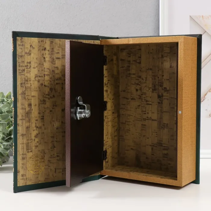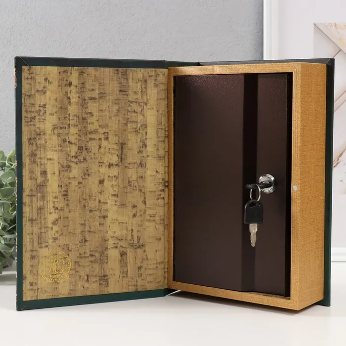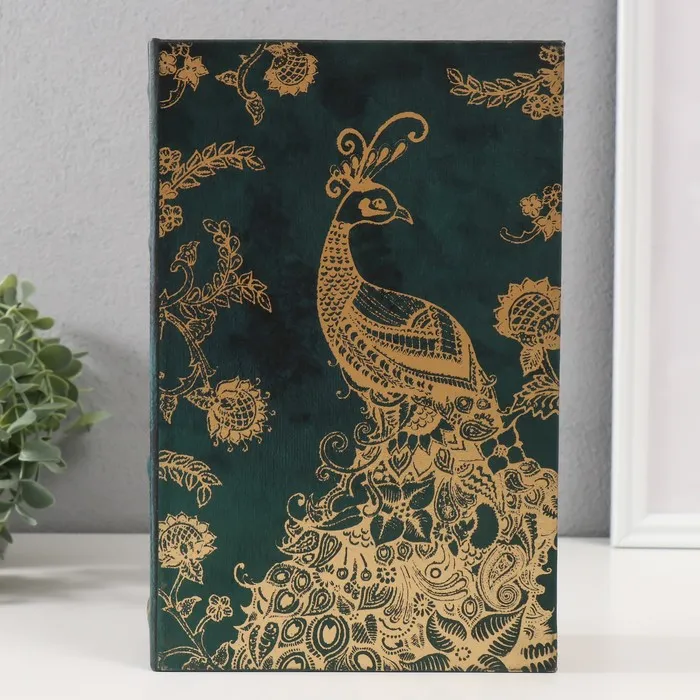 Шкатулка книга-сейф «Золотой павлин», дерево, искусственная кожа, тиснение, 27×18×7 см — Характеристики