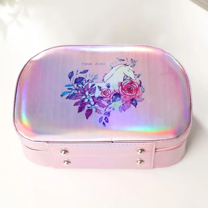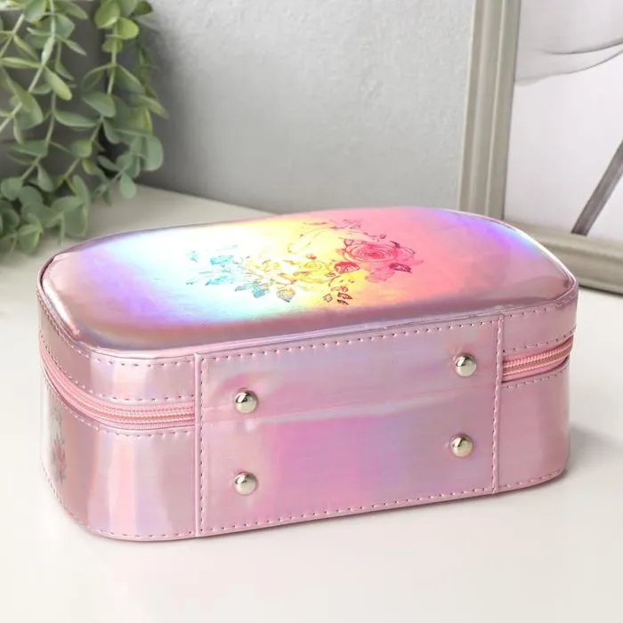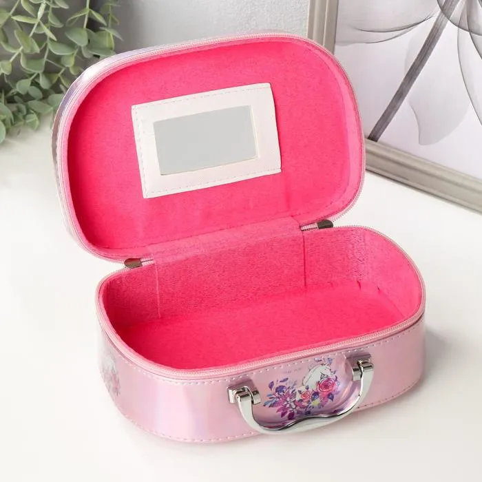 Шкатулка кожзам для косметики "Единорог в цветах" перламутр 8,5х15х22,5 см — Характеристики