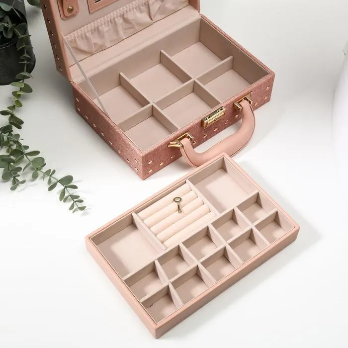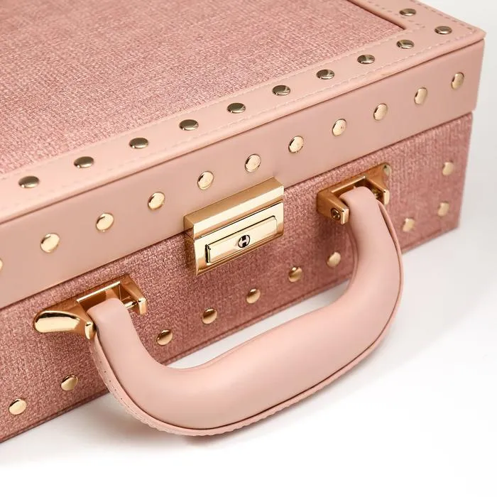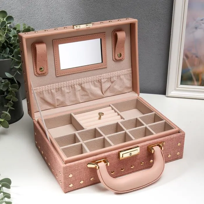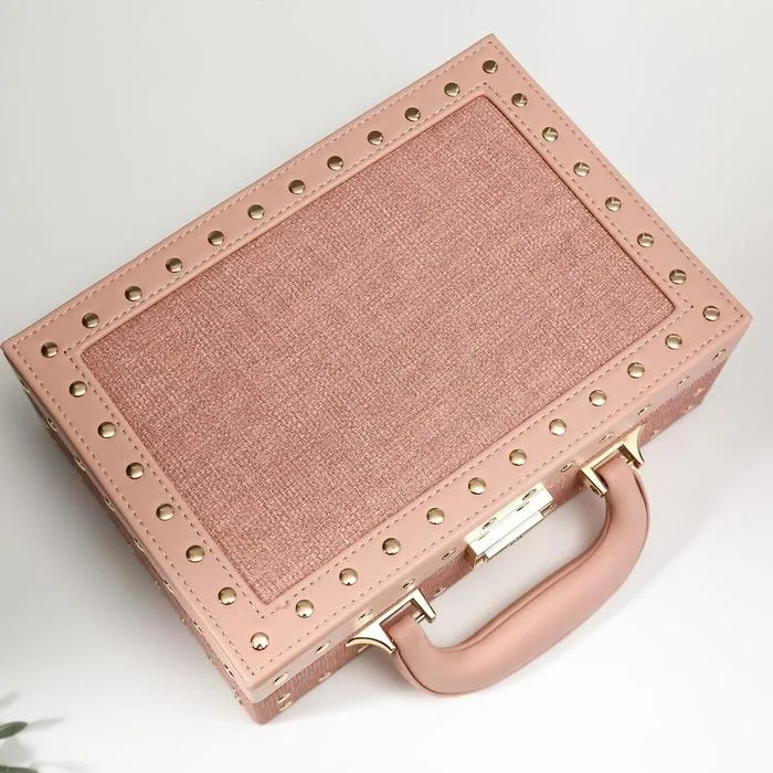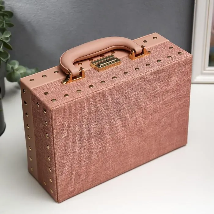 Шкатулка кожзам для украшений чемодан "С заклёпками" розовый беж 9,5х25х17,5 см — Характеристики