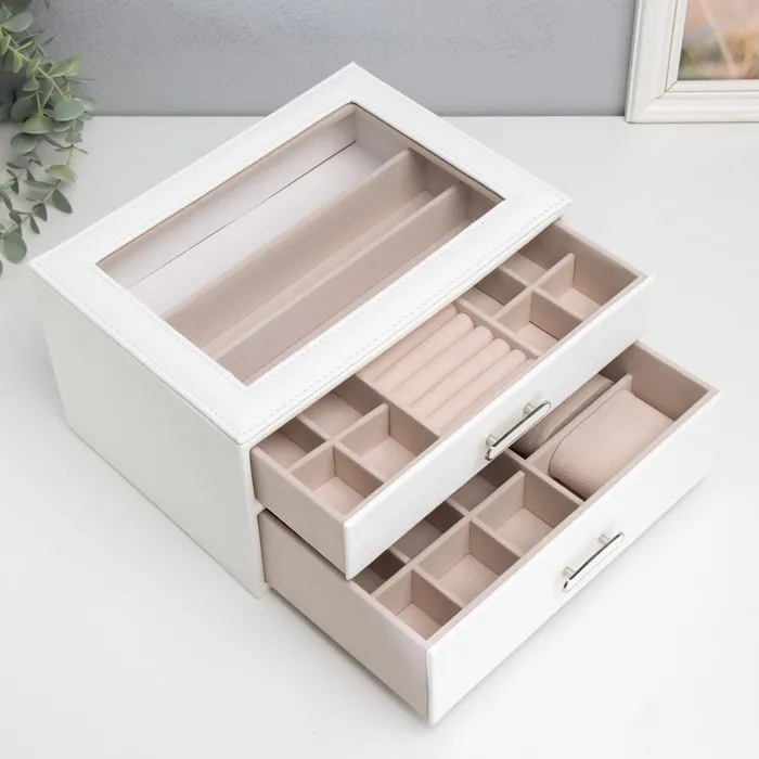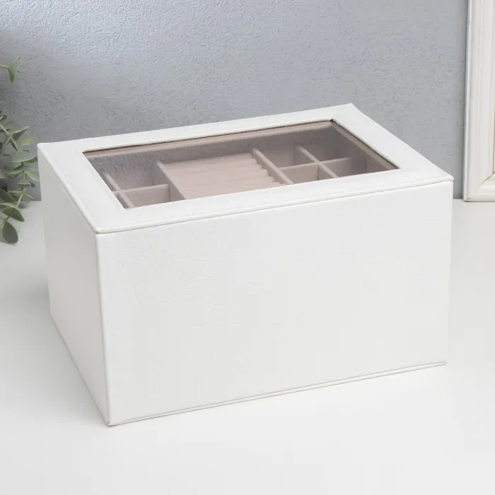 Шкатулка кожзам для украшений "Эльба. Два яруса" белая 25х18х14 см — Характеристики