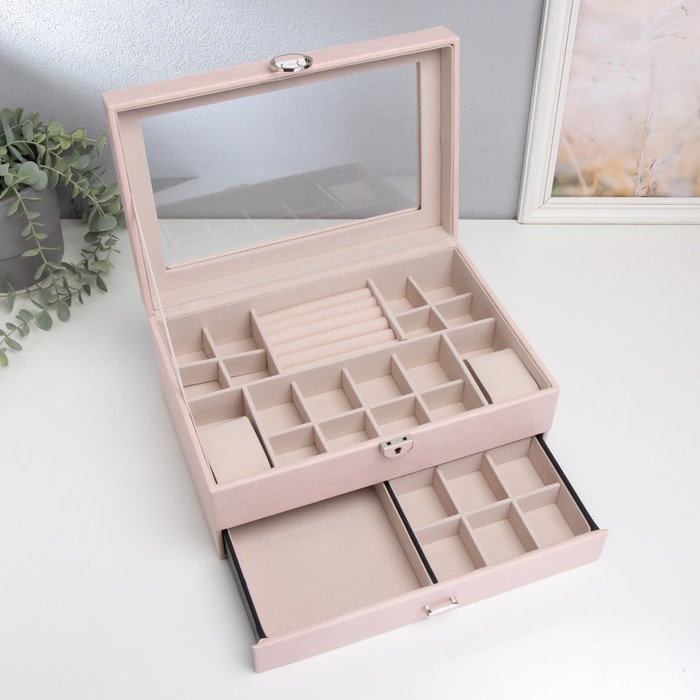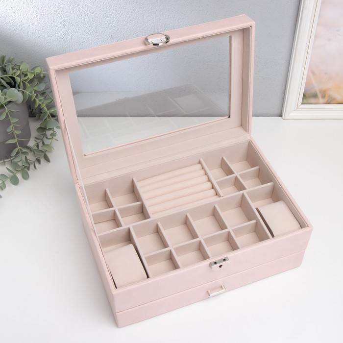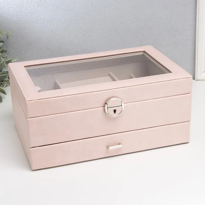 Шкатулка кожзам для украшений "Кабрина" розовая 30,5х20х13,5 см — Характеристики
