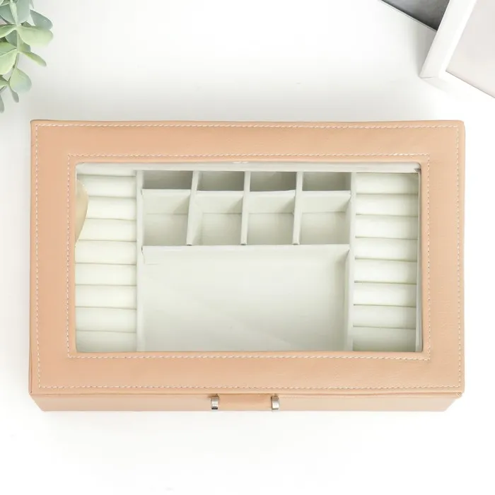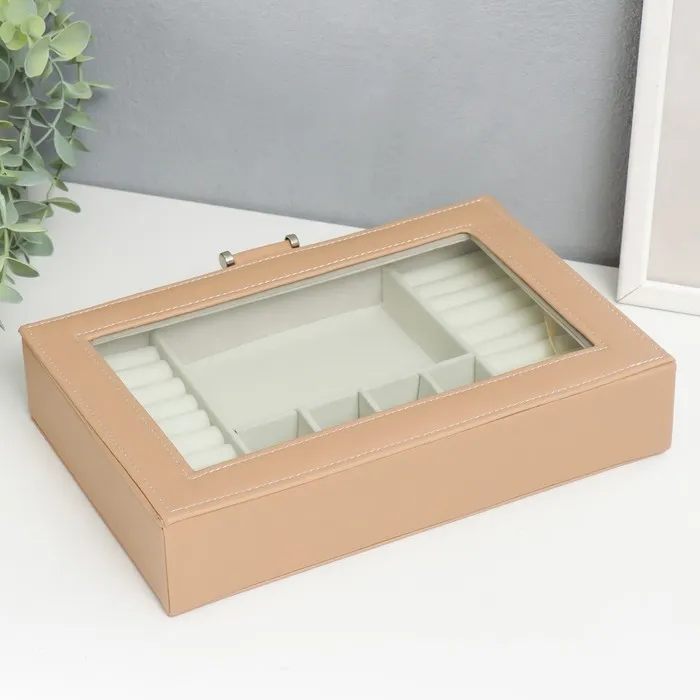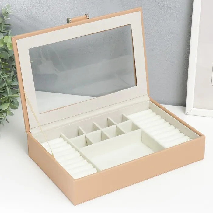 Шкатулка кожзам для украшений "Хэмптонс" бежевая 5,5х27х18 см — Характеристики