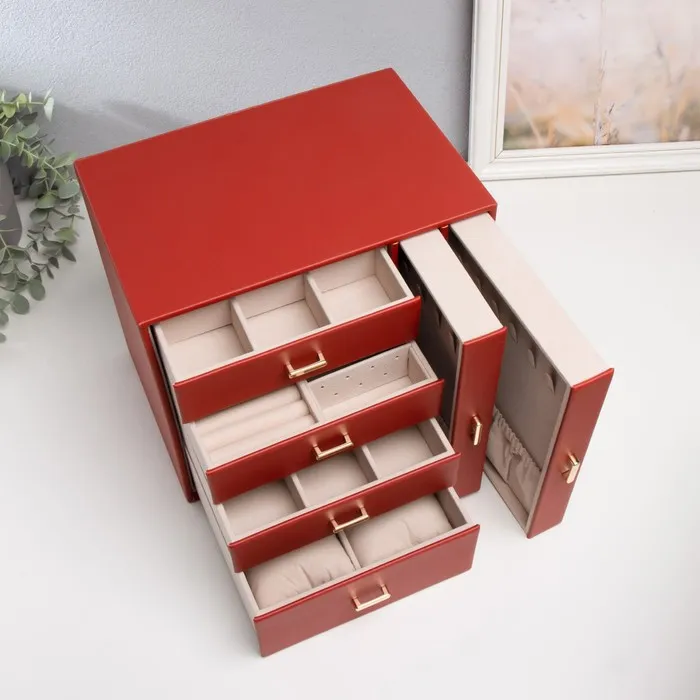 Шкатулка кожзам для украшений "Комод с золотистыми ручками" бордовая 16,3х18х22 см — Характеристики