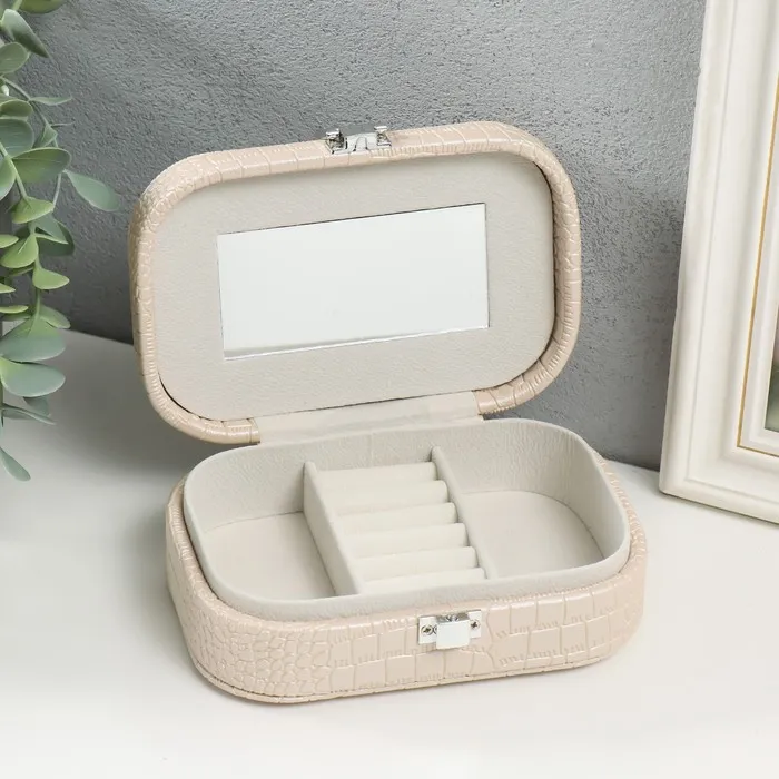 Шкатулка кожзам для украшений "Кожа крокодила" бежевая 15х10,5х5 см — Характеристики