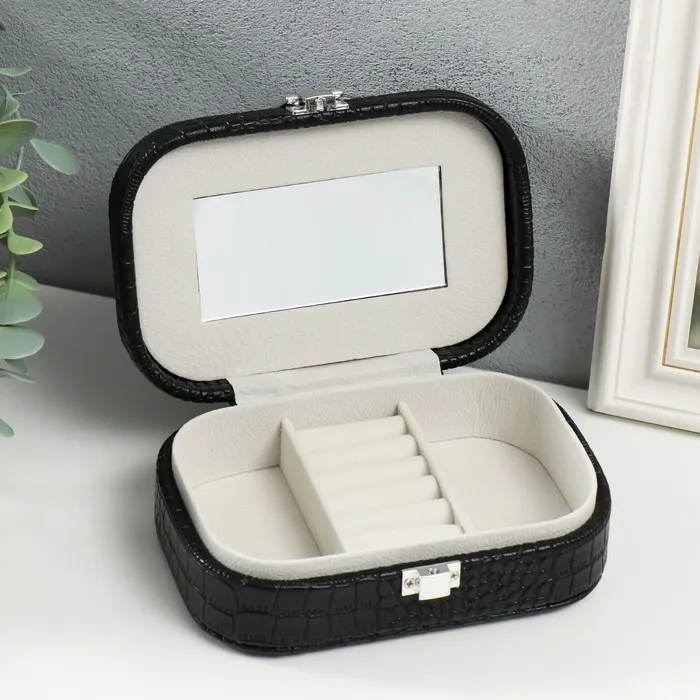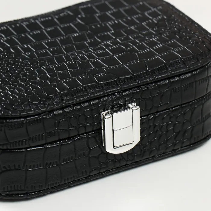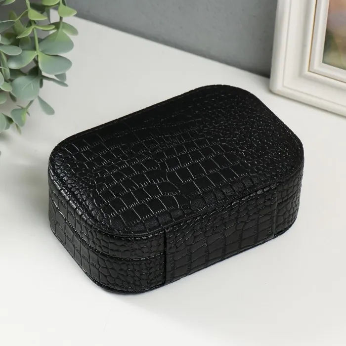 Шкатулка кожзам для украшений "Кожа крокодила" чёрная 15х10,5х5 см — Характеристики