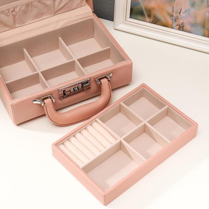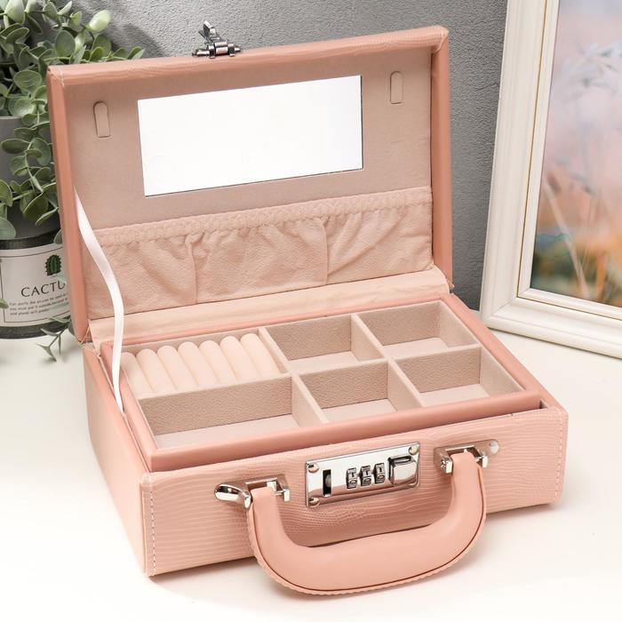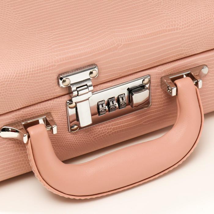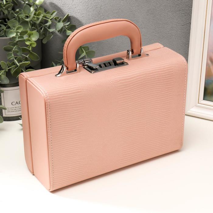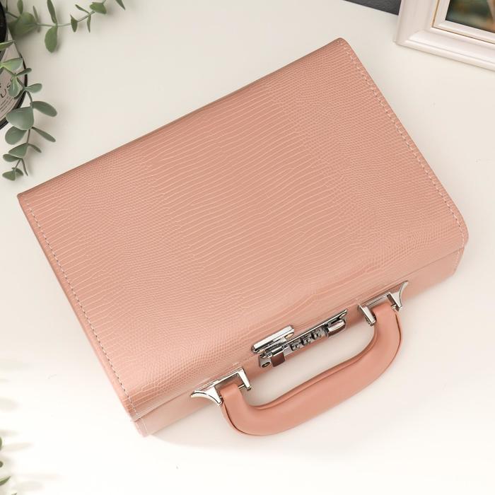 Шкатулка кожзам для украшений "Кожа змеи" нежно-розовая чемодан 9,5х16,5х24 — Характеристики